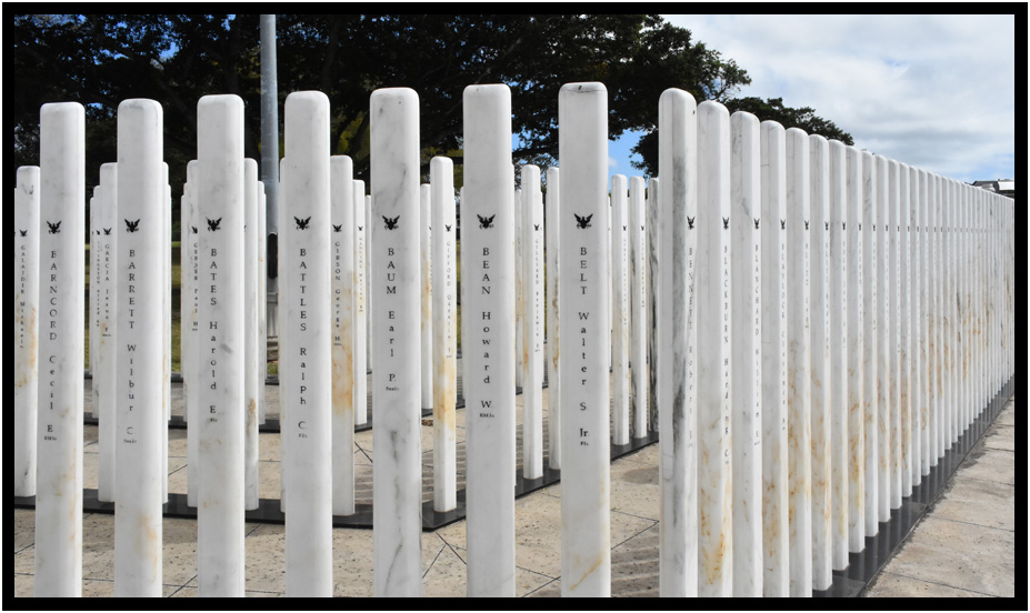 "Manning the Rail," The USS Oklahoma Memorial, Pearl Harbor, Oahu, Hawaii, 2019.
