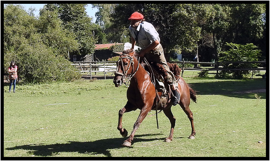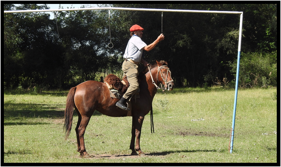 Before our asado, we were treated to a exhibition of gaucho horse riding were gauchos tried to spear small rings from an overhead rack while riding at full gallop.