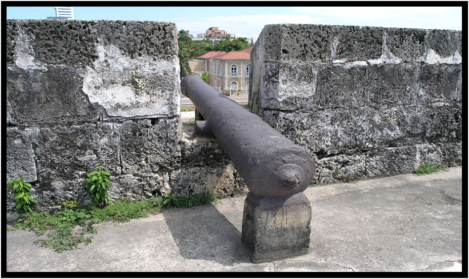 An old cannon looks out from Baluarte Santa Catalina, Old Town Cartagena, Columbia, 2011.