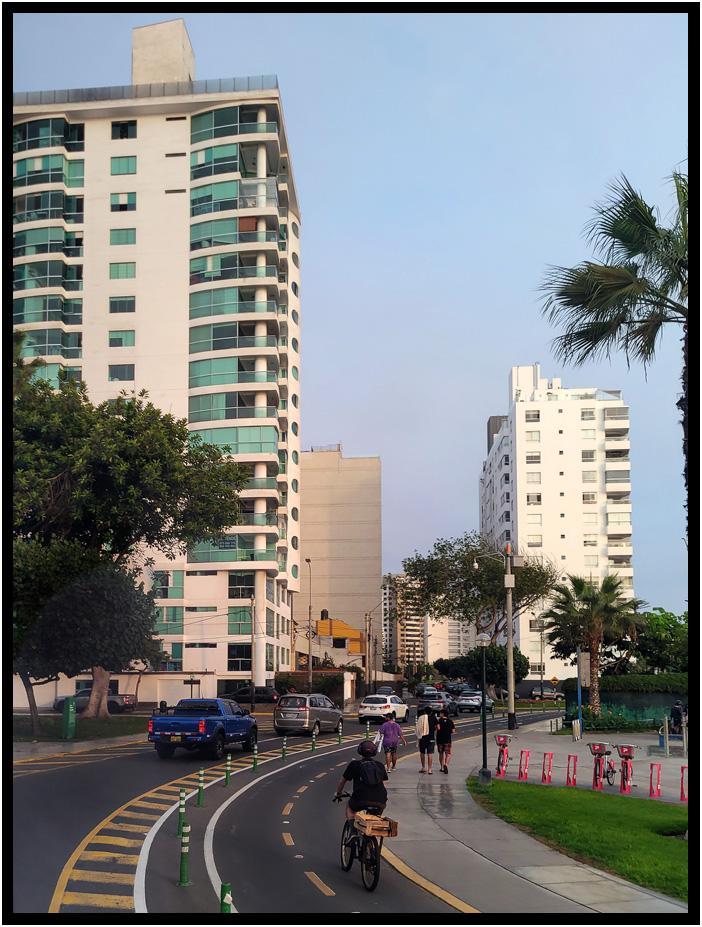 Malecon Cisneros street scene, Miraflores District, Lima, Peru, 2024.