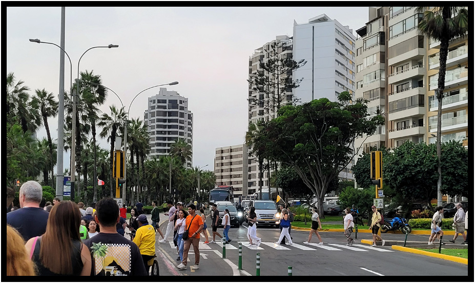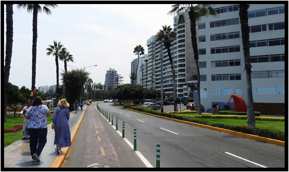 Malecon Cisneros street scene near Parque de Amor, Miraflores District, Lima, Peru, 2024.