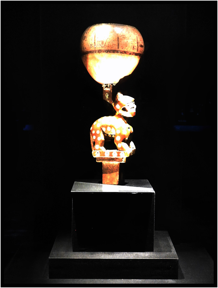 Chimu ceremonial cup, Imperial Epoch (1300 AD - 1532 AD),Ceremonial Vessels exhibit, Museo Larco, Lima, Peru, 2024.