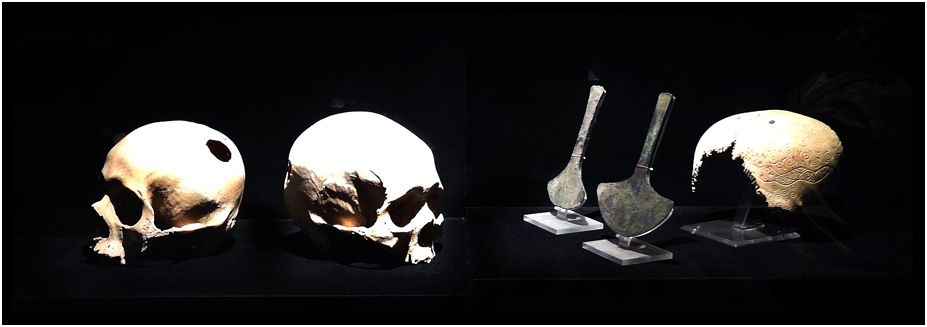Deformed and Transpanated Skulls (1250 BC - 1532 AD), Death in Ancient Peru exhibit, Museo Larco, Lima, Peru, 2024.