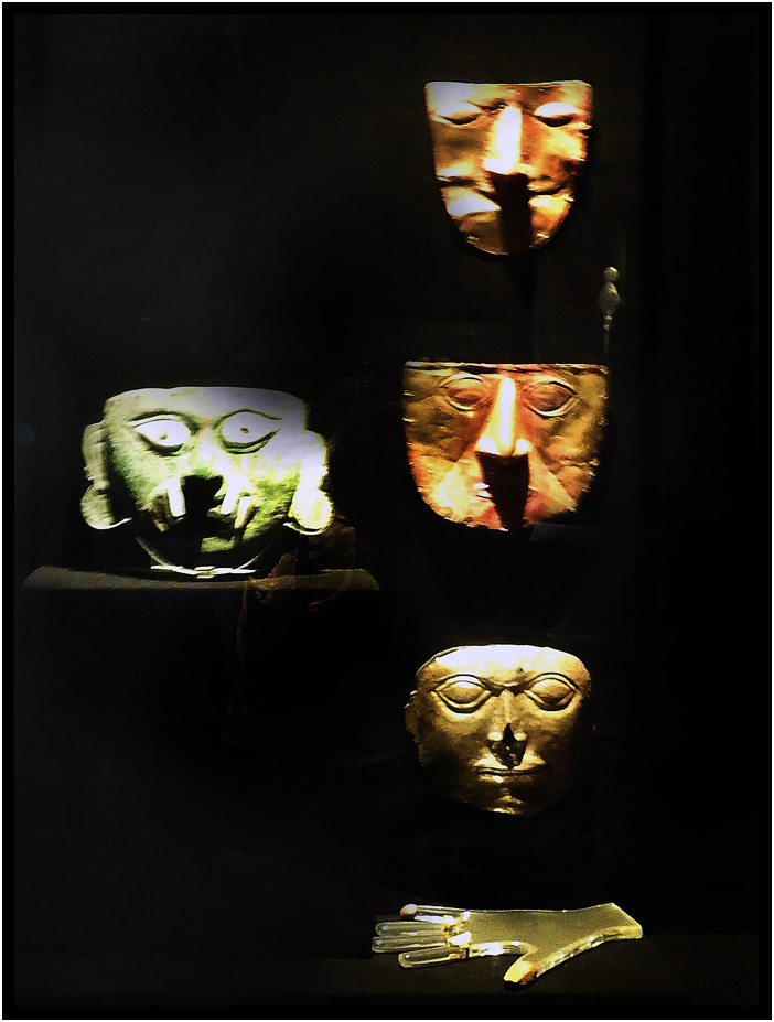 "Funerary masks formed an important element in the burial of the leaders of ancient Peruvian societies.