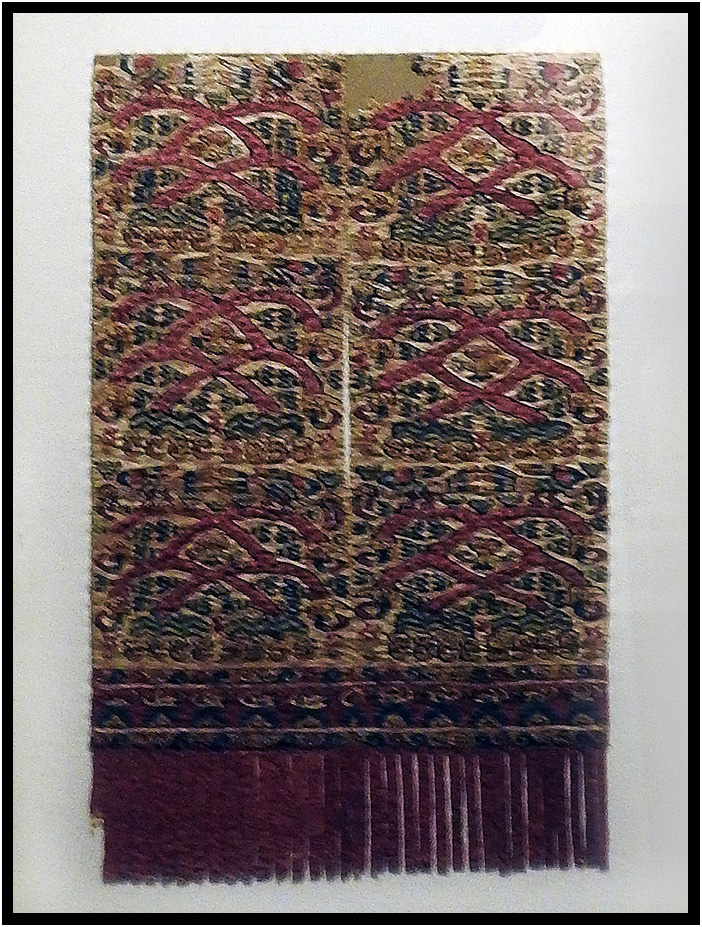 Paracas mantle, Textile technology, Textiles exhibit, Museo Larco, Lima, Peru, 2024.