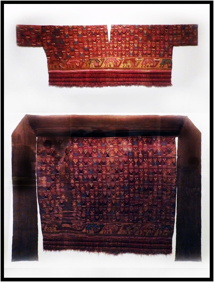 Nasca-Huari feathered tunic, Textile technology, Textiles exhibit, Museo Larco, Lima, Peru, 2024.